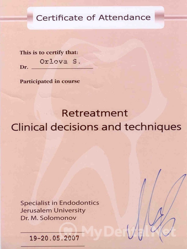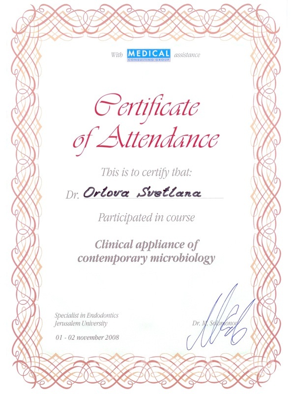2011 г. — Практический семинар «Оперативный микроскоп, эндоскоп и эргономия в эндодонтии и стоматологии», Израиль.