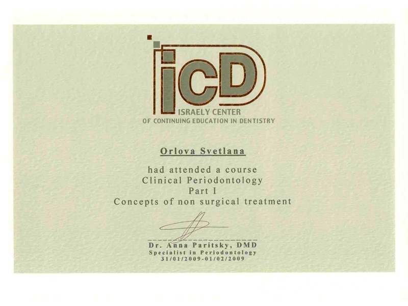 2009 г. — Семинар «Основные современные концепции нехирургического парадонтального лечения». Доктор Парицки Анна, Москва, на базе Израильского центра постдипломного образования в стоматологии.