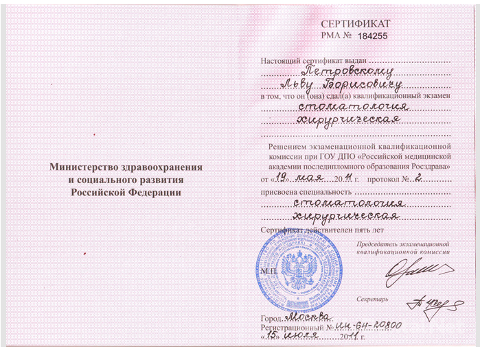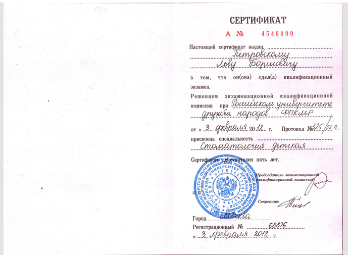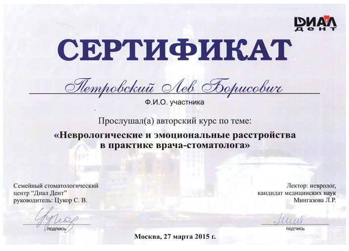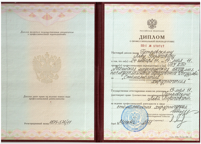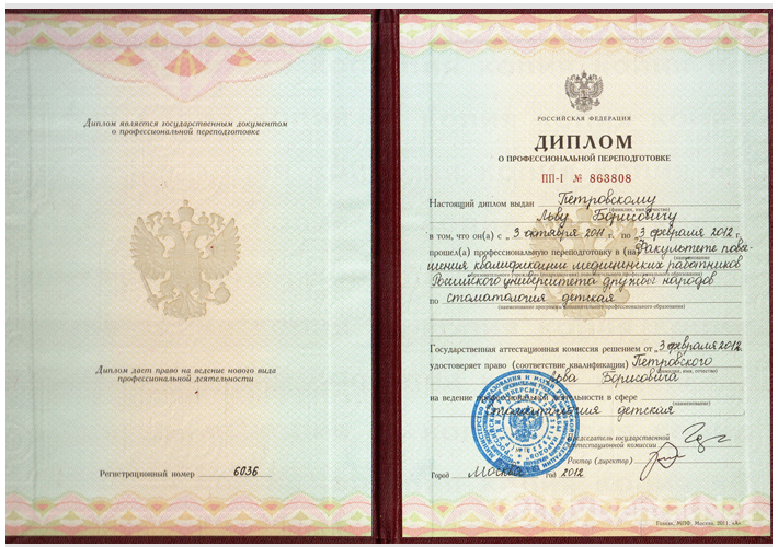 Окончил Первый Московский Государственный Медицинский Университет им. И.М. Сеченова. Прошел стажировки по детской стоматологии, дентальной травматологии, эстетической реабилитации, реставрации и микропротезированию в Южной Корее, Бразилии, Турции, Эстонии, Украине, России. Участник и докладчик международных обучающих конференций. Автор статей в известных профессиональных журналах. Лектор при московском стоматологическом колледже №1.