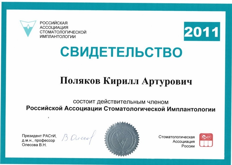 Действительный член Европейской Ассоциации челюстно-лицевых хирургов с 2008 г. Ассистент и ученый секретарь 1-го Московского Государственного Медицинского Университета.