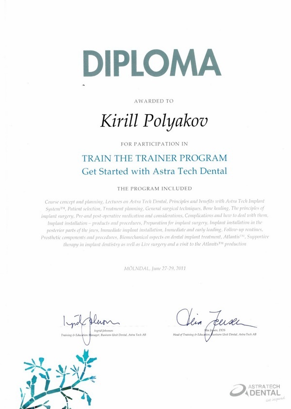 Сотрудничает с мировыми лидерами по производству имплантатов: «Astra Tech», «Alfa Bio», «Strauman».