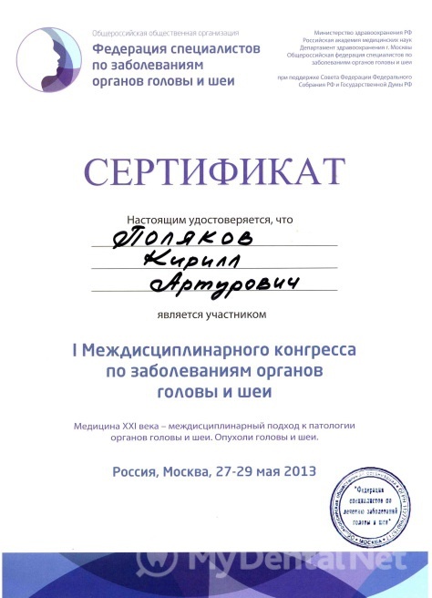 Специализация: челюстно-лицевая хирургия, парадонтология, имплантология, рентгенодиагностика
