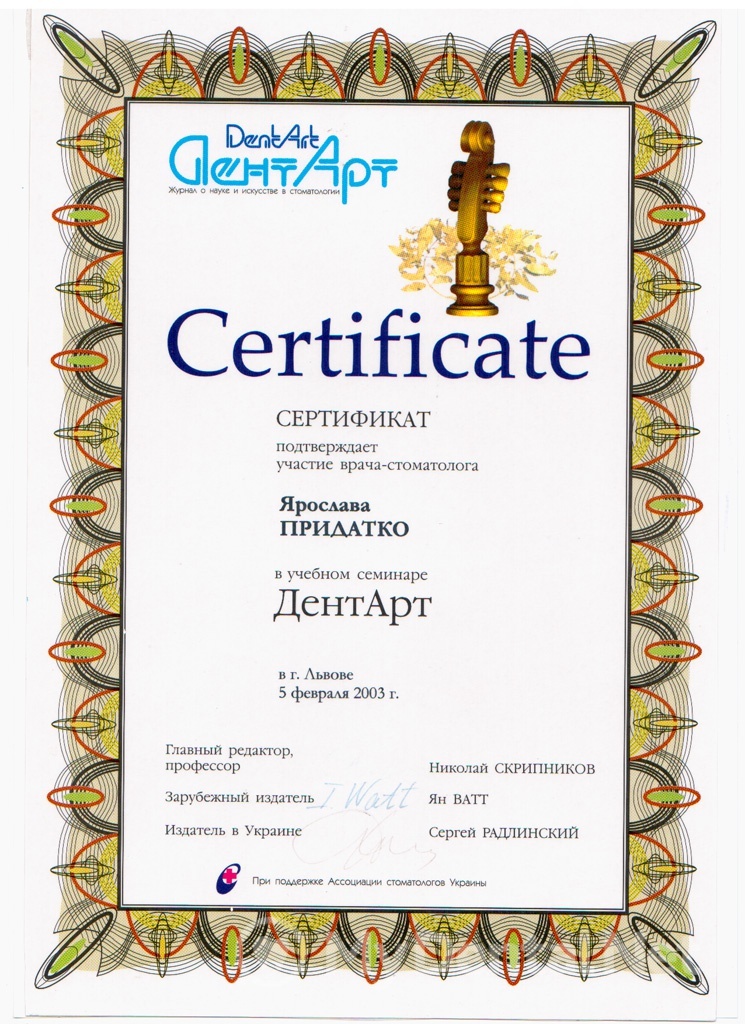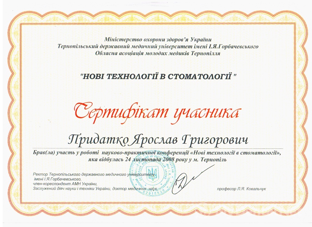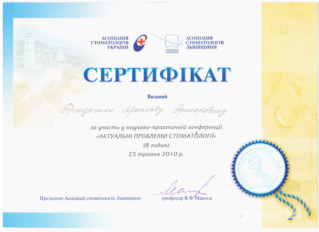 Окончил в 1994г. Львовский государственный медицинский институт.