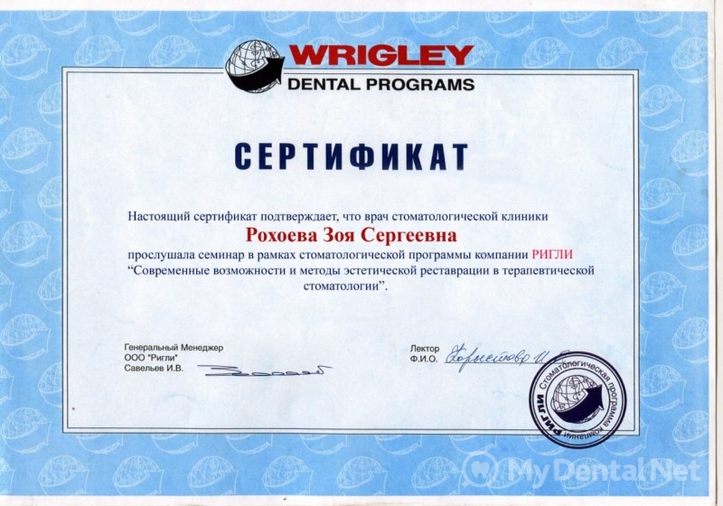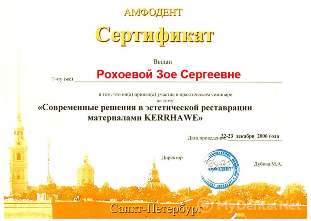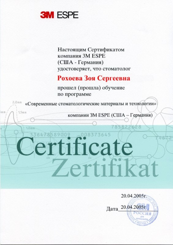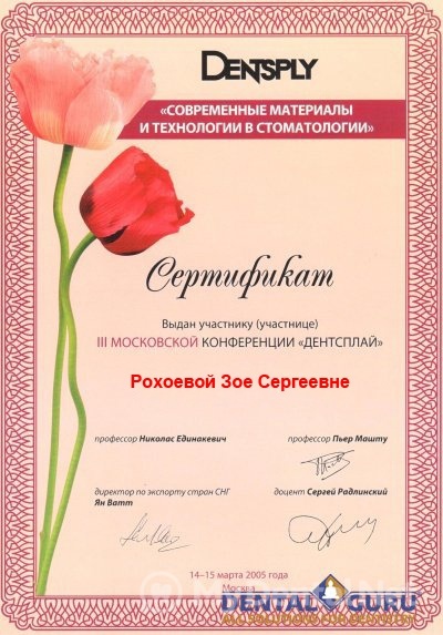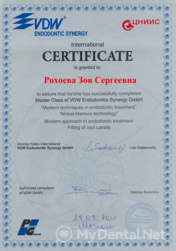 2007 г. — Семинар «Новейшие технологии в эндодонтии. Применение никель-титановых инструментов при обработке каналов системой Mtwo» в компании VDW GmbH (Германия)