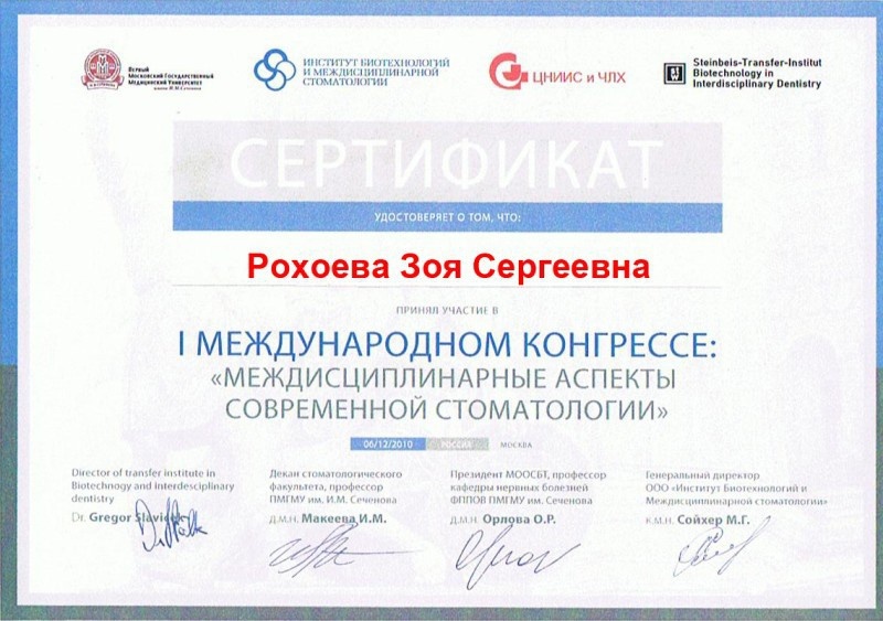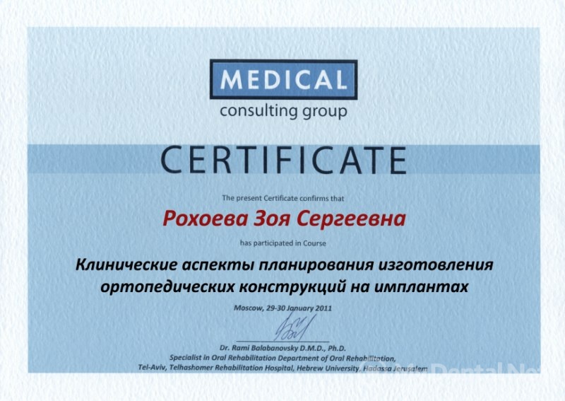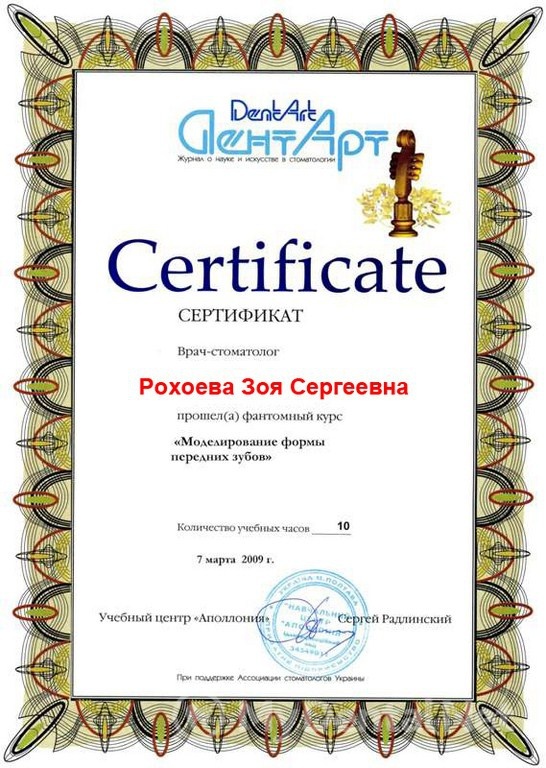 2009 г. – Курсы в Стоматологическом Образовательном центре «Fenestra» «Съемное протезирование»