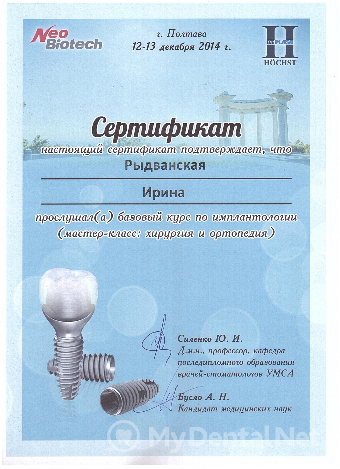 2010 – U-Impl Educational Centre. Basic Theoretical Course for Implantology.