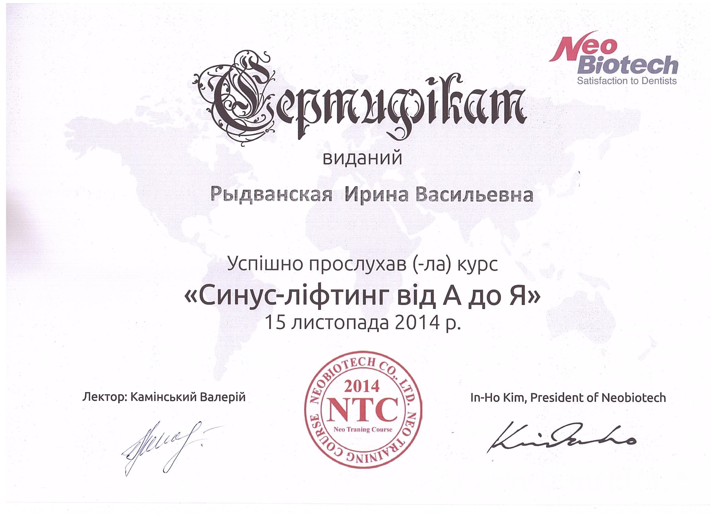 2008 – Стоматологический научно-клинический центр «Стамил». Современные концепции стоматологии. Лектор: Доктор Йорг Вайнер ( Германия).