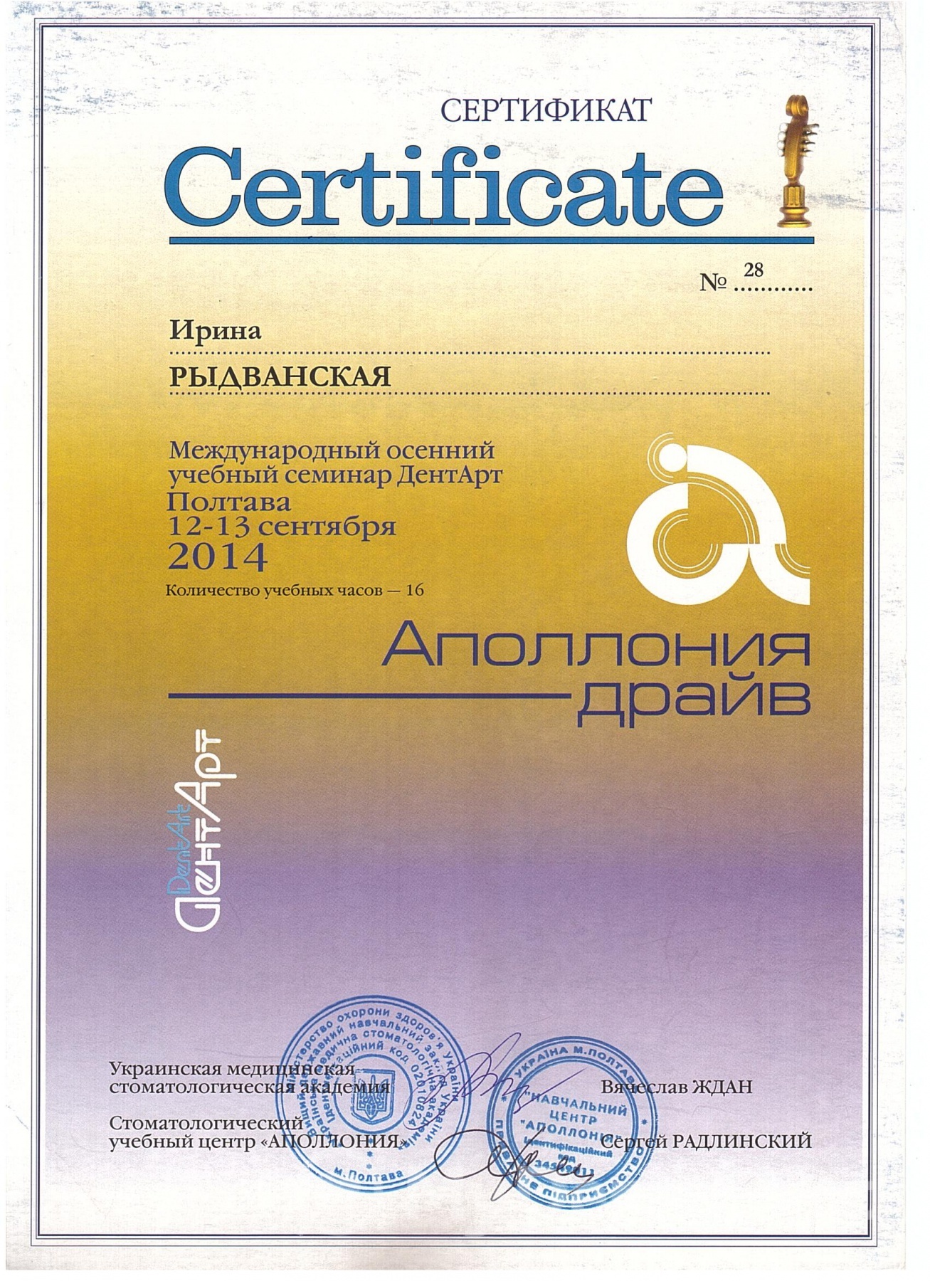 2010 – Інститут Єстетичної Стоматології. Сучасний протокол комплексної естетичної реабілітації в ортопедичній стоматології.