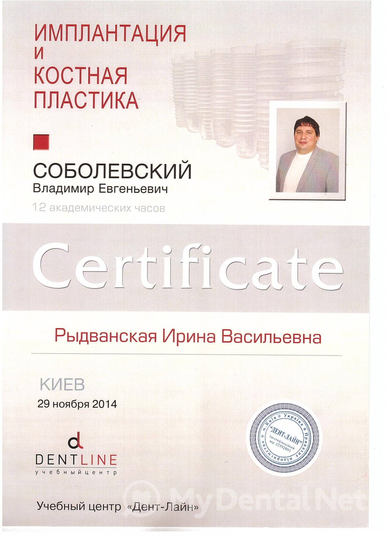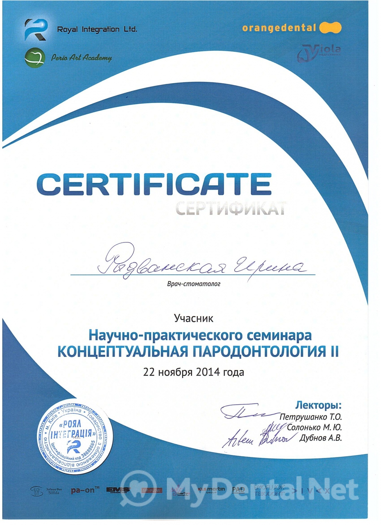 2010 – Global Dental Congress Dent Life. Учасник Всесвітнього Конгресу «Дент Лайф».