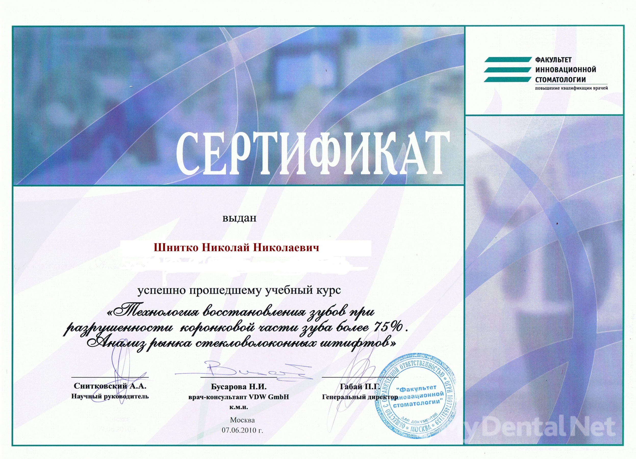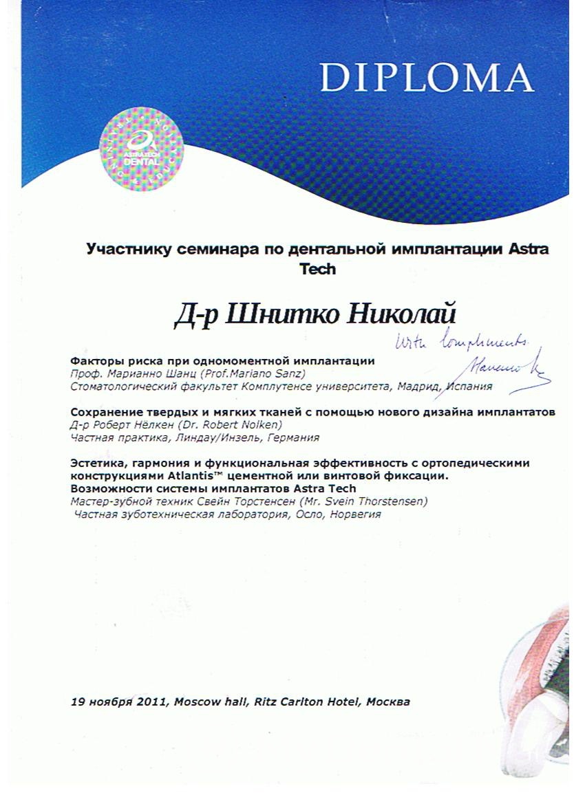2010г. – Курсы «Стабилизация съемных протезов миниимплантами»