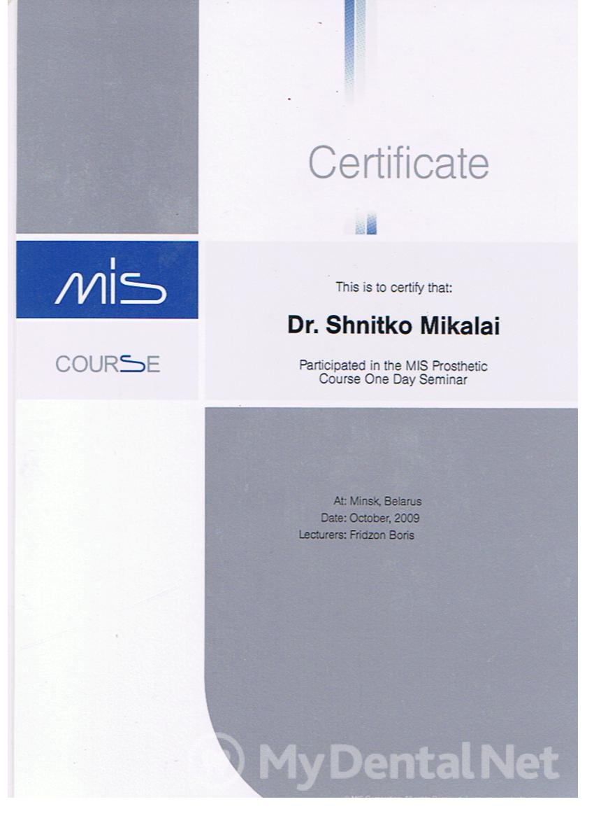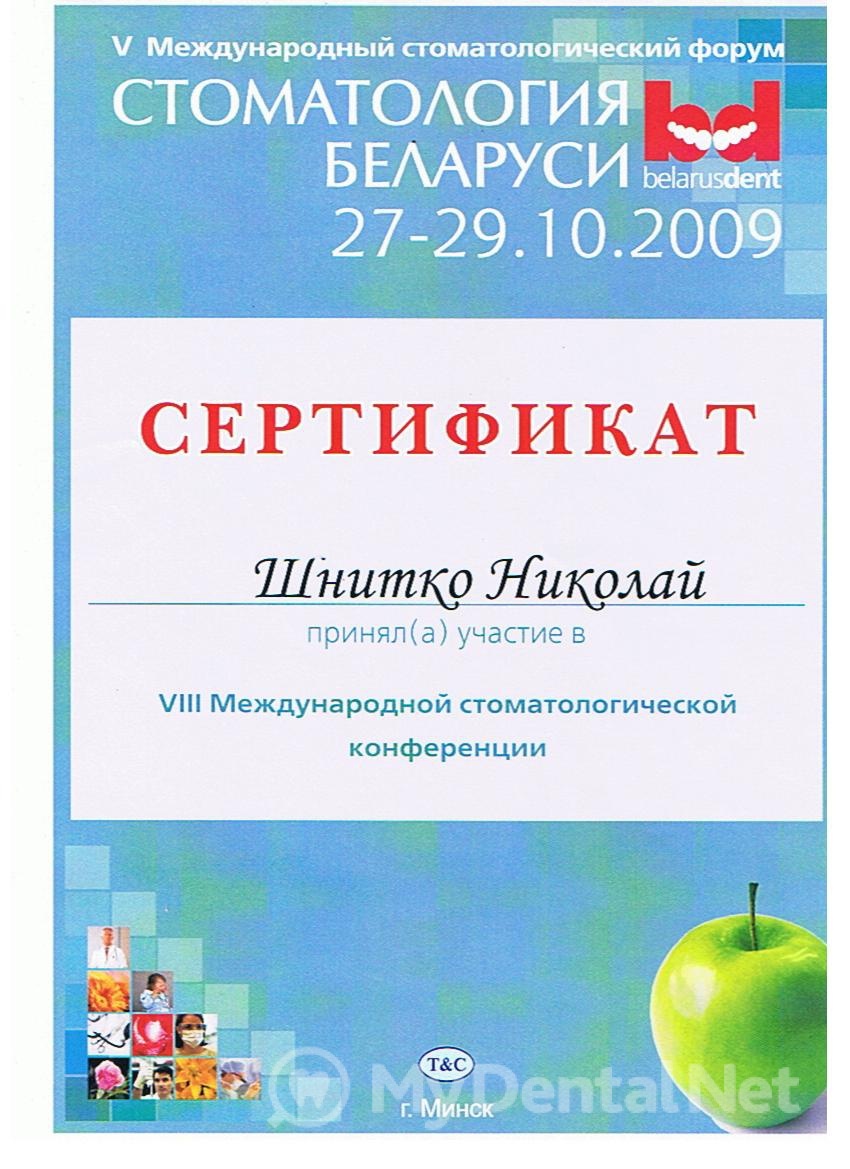 2002г — Клиническая интернатура по специализации «Стоматология общей практики» при Белорусском Государственном Медицинском Университете