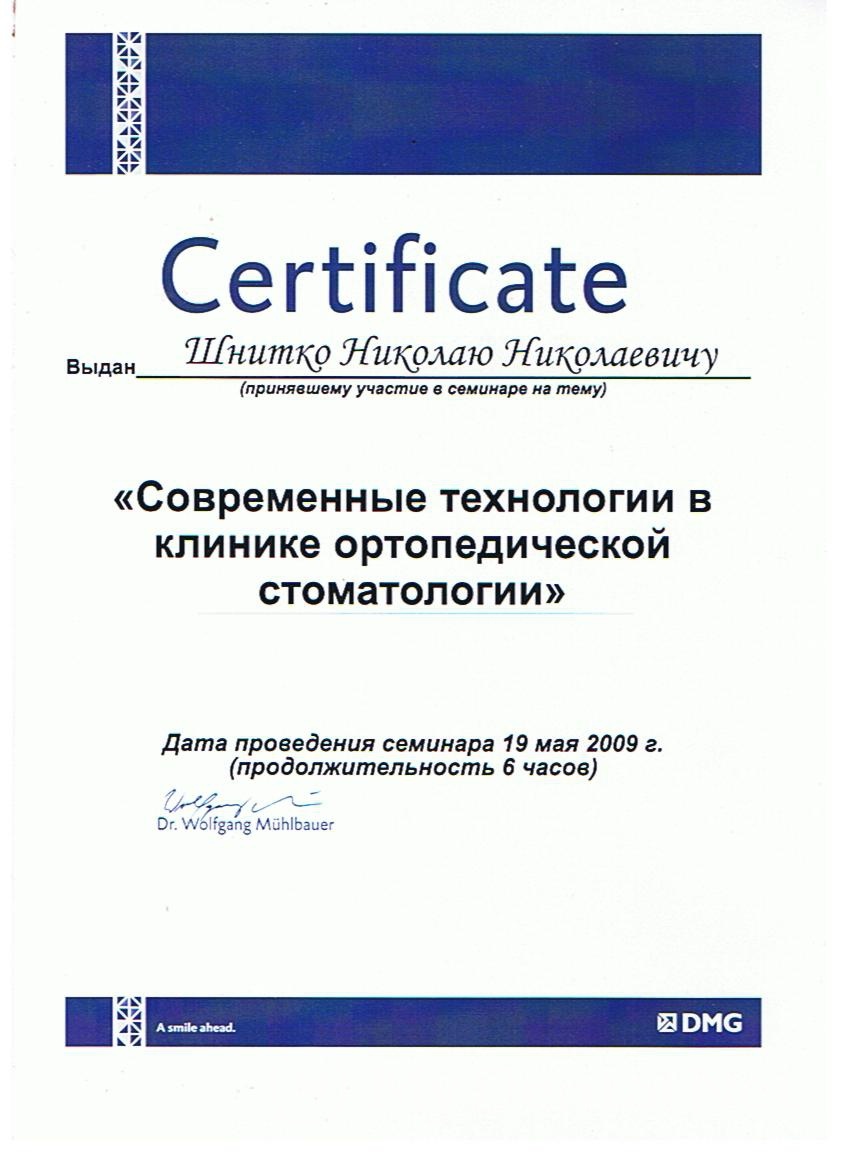 2009г. – Курсы в Стоматологическом Образовательном центре «Fenestra» «Съемное протезирование»