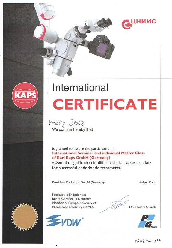 Участник семинара «Эндодонтия от А до Я» (компания Dentsply, 2012 г.).
