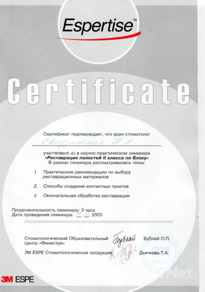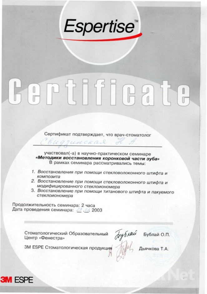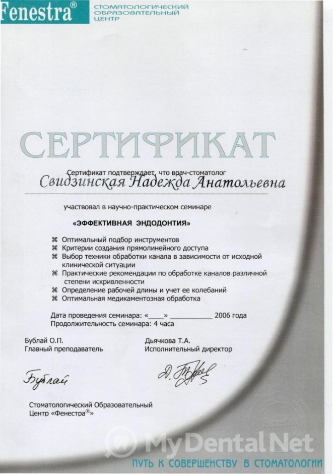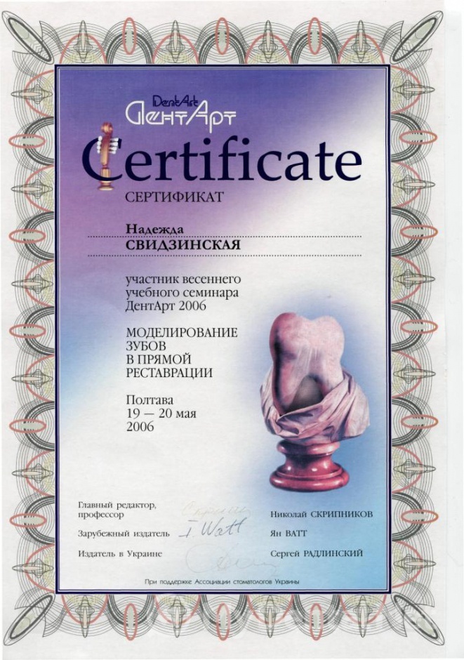 Профессионал своего дела - врач стоматолог-терапевт высшей категории. Закончила Крымский Медицинский институт в 1985 году. Большой опыт работы детским стоматологом. С 2002 по 2012 годы работала заведующей стоматологическим отделением в городской поликлинике №10. Регулярно проходит курсы повышения квалификации и посещает выставки, симпозиумы, семинары и мастер-классы по терапевтической стоматологии, эндодонтии, эстетической реставрации. Специализируется в области эндодонтии и реставрации зубов. Большое внимание уделяет профилактике стоматологических заболеваний, реставрации сколотых, разрушенных зубов, исправлению аномалий зубного ряда (щели между зубами, зубы с дефектами развития и т.д.)