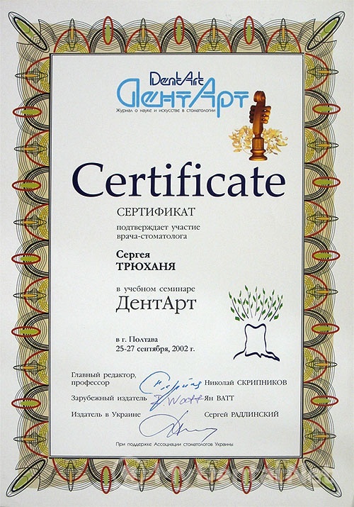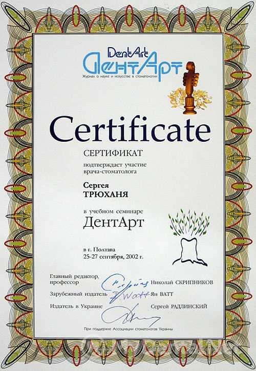 Закончил Полтавскую медицинскую стоматологическую академию в 1989 году. Врачебная категория - высшая.