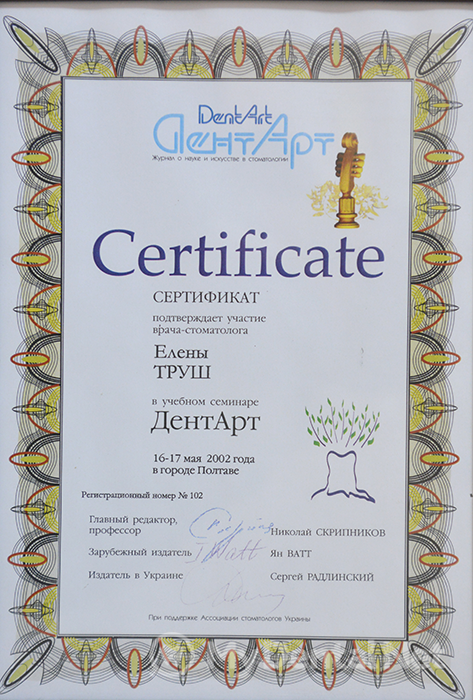 2002 г. Участие в учебном семинаре «Дент Арт» г. Полтава