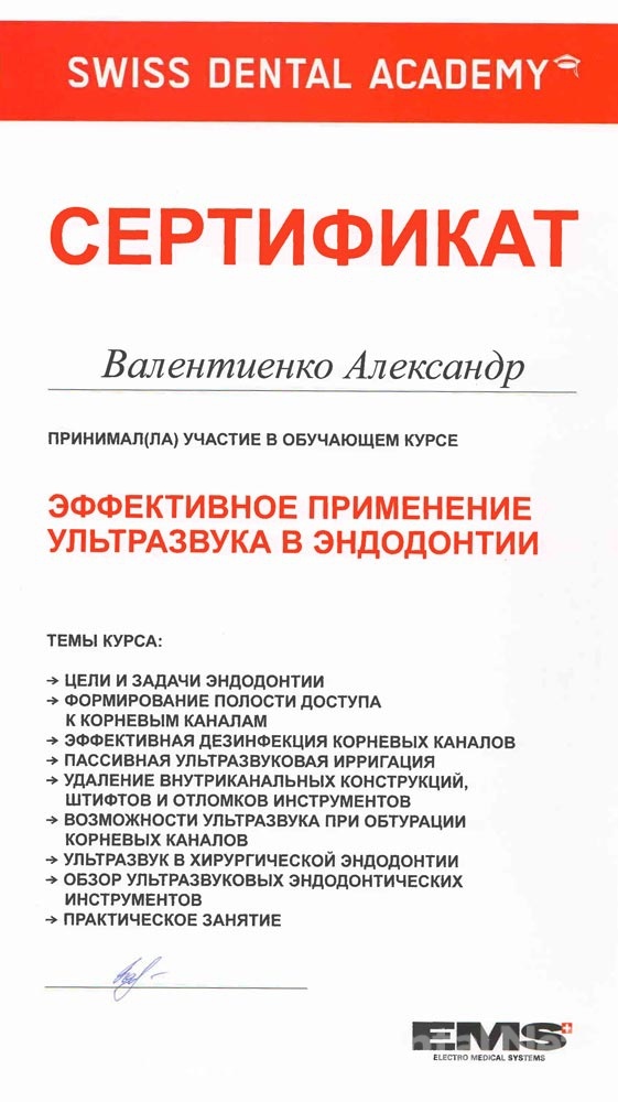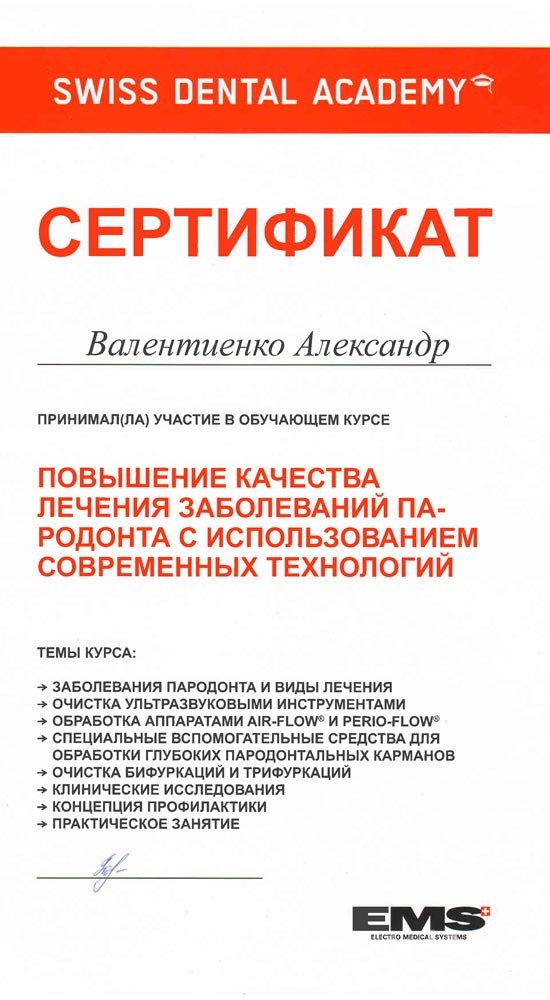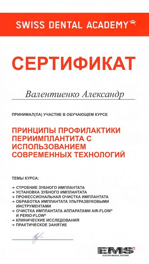 Главный научный консультант по имплантации и костной пластике. Опыт работы с различными имплантационными системами более 15 лет. Проводит операции с ведущими специалистами Украины, России и стран Европы. Проходил обучение в клинике профессора Берштейна (г. Дюссельдорф).