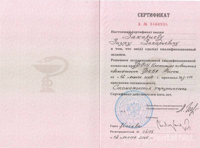 врач-стоматолог, терапевт, ортопед, хирург, Кандидат медицинских наук
