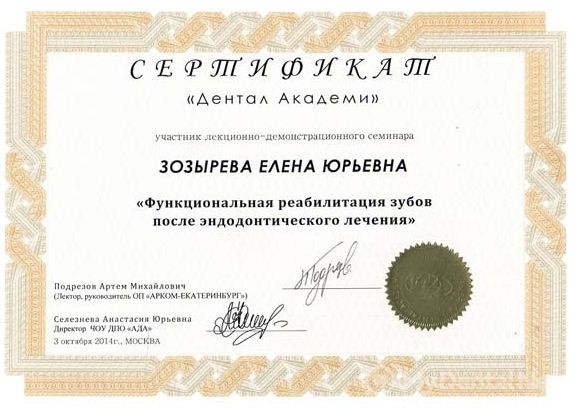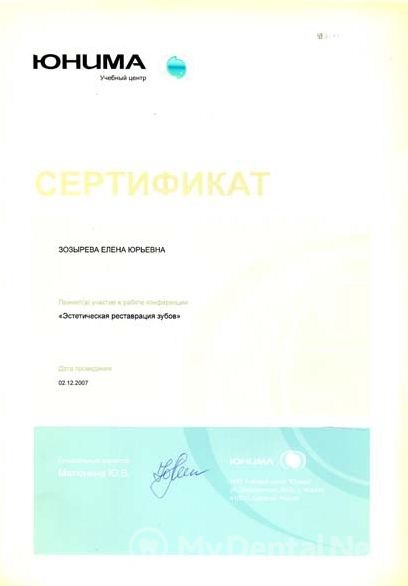 Елена Юрьевна – стоматолог-терапевт с 13-летним стажем. Успешно выполняет сложные реставрационные и эндодонтические работы. Владеет методами отбеливания и профессиональной чистки полости рта. Считает, что завоевать доверие, даже у самого взыскательного пациента, и его оправдать – главная задача врача-стоматолога. Елена Юрьевна со своей задачей отлично справляется. Искренне любит свою работу и считает её призванием.