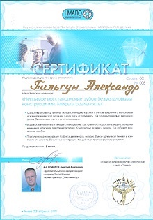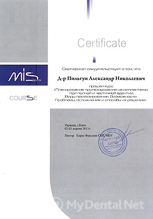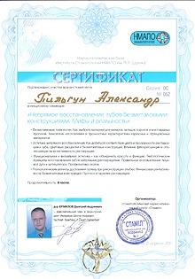 Профессиональная специализация: сложное зубное протезирование на дентальных имплантатах.